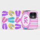 Monogramme rose tongs coloré et Surfboard Plage Tropical iPhone 5 Coque.