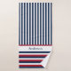 Monogramme Rouge, blanc et bleu rayures serviettes de bain nautique. Personnalisez avec votre propre nom. Cet affichage montre la serviette de bain pliée en deux, regardez l'image dépliée pour voir le monogramme pour ceux qui plient leurs serviettes en tiers.