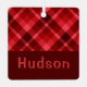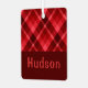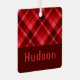 Un ornement en métal carré monogrammé arboré de Noël avec un beau design en motif de plaid en diagonale en rouge rubis. Créez le cadeau customisé parfait en cliquant sur le bouton "personnalisé" pour ajouter un nom ou un message personnalisé dans le champ de modèle fourni. Cliquez sur le lien "Modifier à l'aide de l'outil de conception" pour modifier la police, la taille du texte et plus encore.