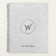 Un beau design monographique utilisant votre nom et initiale en forme de cercle classe. Une texture en faux lin gris dans l'arrière - plan aux accents noirs crée un style unique. Customisez le monogramme et le texte et faites-le vous-même. Fournitures de bureau et de papeterie d'école idéales. Autres couleurs de lin offertes dans ce design.