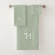 C'est une teinte douce de vert sauge. Un vert tendance qui est terreux, mais clairement un beau pastel qui fonctionnera avec de nombreuses nuances qui sont en tendance maintenant. Le monogramme est entièrement personnalisable de la police à la couleur et au contour tracé. Les couleurs choisies sont blanches avec un contour vert foncé. Correspond à la gamme de produits Serene Sage Home. C'est une couleur pour une chambre et un bain calmes.