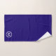 Monogramme élégant sur un ensemble de serviettes de bain bleues. Monogramme sur un seul côté.