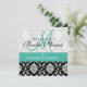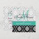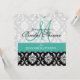 Invitation à la douche nuptiale Turquoise Damask Monogramme.com et WhiteWhimsicalWeddings.blogspot.com. Customisez avec vos noms monographiques et couleurs mariages. Ajoutez toutes vos informations mariages au verso de la carte en utilisant les invites de menu faciles à utiliser de Zazzle. Conception par Elke Clarke ©2011. Graphiques sous licence pour utilisation commerciale