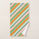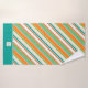 Des rayures diagonales lumineuses orange, vert et bleu turquoise contrastent avec le blanc pour donner à cette serviette de bain trois pièces un motif unique. Les points correspondants donnent plus d'intérêt au motif. La serviette de bain a également une bordure de fond turquoise solide avec votre monogramme sur une bannière blanche ornée. Coloré! Assurez-vous de voir les produits correspondants dans notre magasin. *L'image clipart utilisée dans cette conception est protégée par le droit d'auteur de Encore Software, Inc., qui permet son utilisation à ses concédants de licence. Tous droits réservés.