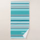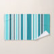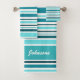De jolies lignes claires et turquoise foncée sur un bel ensemble de serviettes de bain rayées turquoise customisé de votre nom de famille. Un décor de bain parfait pour une maison de plage qui rappelle les jolis tons de l'océan ou du bord de mer.