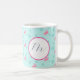 Cette tasse de Noël tropicale présente un motif flamand rose aquarelle sur un arrière - plan turquoise pâle aux flocons de neige. Utilisez le champ modèle pour ajouter votre monogramme personnalisé. Un cadeau de vacances charmant pour l'amoureux du flamand dans votre vie. Pour voir le décor des pinkmas et des cadeaux de Noël uniques, visitez le www.zazzle.com/dotellabelle OEuvre d'aquarelle originale et design de Victoria Grigaliunas de Do Tell A Belle