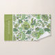 Serviette de bain imprimée sur mesure avec un motif floral fantaisiste dans les tons vert, menthe et blanc. Personnalisez-le avec votre nom monogramme et initial dans un cadre vert vif. Utilisez les outils de conception pour modifier les polices de texte et les couleurs et ajouter vos propres photos pour créer un design unique.