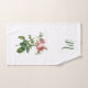 Un ensemble de serviettes avec une magnifique illustration botanique du botaniste et artiste de renom Pierre-Joseph Redouté. Plongez dans la beauté de Rosa Centifolia, une rose rose rose délicate et captivante capturée dans le chef-d'oeuvre méticuleux de Redouté en aquarelle.