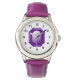 Monogrammé violet Amethyst gemstone logo fille montre. Montre personnalisée personnalisée avec le nom de l'enfant ou la lettre initiale monogramme. Joli bijou en pierres précieuses thème chronomètre design horloge pour la fête d'anniversaire de petite fille. Faites-en un pour fille, petite-fille, cousin, etc.