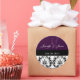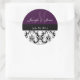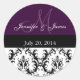 Monogramme violet Damas pour Stickers Mariage. Art et design par Elke Clarke©2010. Plus de conceptions sur whitewhimsocalweddings.com et whitewhimsicalweddings.blogspot.com. Customisez avec vos informations personnelles et couleurs mariages.