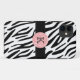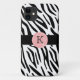 Le coque monogramme branché pour iPhone 5 à impression zèbre est doté de rayures en zèbre noir et d'une bordure noire d'accent avec un volley-ball rose pastel pour votre premier appareil. Montrez votre personnalité avec ce coque branché et amusant iPhone 5. Fait un grand cadeau pour toutes les occasions. Cliquez sur "Customiser!" pour changer la couleur arrière - plan, la couleur du texte, la taille du texte, le style de police et plus encore!