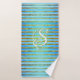 Monogrammes en rayures turquoise, verte et blanche
