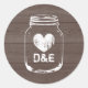 Bois rustique pays chic bocal mariage grand autocollants à la bocale de bois. Conception monogrammée vintage pour do-it-yourself jardin d'été grange mariage / douche nuptiale mignonne. Joli design avec un symbole d'amour défraîchi. Couleur arrière - plan personnalisable. brun et blanc. Personnalisable avec nom ou monogramme de mariée et mariée. Pratique pour les faveurs et comme scellants d'enveloppe.