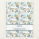 Un motif botanique tropical moderne et chic avec des feuilles, feuillage sur un arrière - plan blanc. Couleurs : bleu, gris, or et or rose. Personnalisez et ajoutez votre nom et une année en gris foncé.