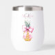 Un élégant arrière - plan blanc décoré d'un arc rose et d'un ananas. Personnalisez et ajoutez un nom et vos initiales monographiques.