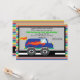 Commencez votre fête avec ce invitation de camion de Monster. Faites de l'anniversaire de ce garçon spécial un anniversaire mémorable ! Voici un camion bleu vif avec des flammes orange de l'autre côté. il a de gros pneus noirs. C'est dans une rue. Il a un arrière - plan à damiers en argent avec une bordure noire. L'extérieur de cette invitation a des bandes minces multicolores. Personnalisez-le avec les informations de votre parti. Découvrez les nombreux autres produits et couleurs de cette ligne. © Illustrations JW
