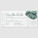 Carte d'embarquement style billet d'avion enregistrer la date aimant avec une grande feuille de monstère et polices modernes et décontractées parfaites pour une destination tropicale mariage, mariage sur la plage, ou la célébration de mariage sur le thème de l'île, sera superbe sur le réfrigérateur de vos invités en attendant leur date de départ pour voyager à votre événement. Toutes les polices et couleurs arrière - plans sont modifiables pour correspondre à votre style mariage tropical.