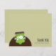 Cartes de remerciement plates sur le thème d'Halloween. Le design présente un monstre de Frankenstein convivial et mignon avec un visage vert et des boulons dans le cou ! Ces cartes sont parfaites pour remercier les gens d'avoir assisté à votre soirée d'Halloween ou pour les remercier de leur cadeau. Personnalisez facilement avec votre propre nom. Cartes plates, enveloppes incluses. Copyright © Lisa Marie Robinson | Lisa Marie Art & Illustration. Tous droits réservés. Il est illégal d'utiliser ou de dupliquer cette image, ou l'une de nos images, sans autorisation écrite.