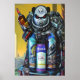 Un robot monstre composé de canettes de soda et d'autres types de canettes et de bouteilles, debout en ville. C'est un art généré par l'IA.