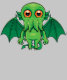 Vector cartoon illustration of cute green baby baby Cthulhu monster with big orange eyes. Tags: cthulhu, octopus, monster, lovecraft, chibi, squid, sea, ocean, animal, creature