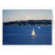 Le mont Rainier est un stratovolcan massif situé à 87 km au sud-est de Seattle, aux États-Unis, à 54 miles (87 km). C'est la montagne la plus importante des Etats-Unis contigus et de l'Arc Volcanique Cascade, avec une altitude sommet de 4392 m. C'est génial ! Au verso de la carte, on peut voir un autre panorama de voiliers sur le Puget Sound avec le Mont Rainier qui se profile à l'horizon.