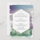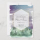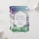 Ce faire-part de mariage présente une aquarelle sereine représentant des montagnes et des pins avec des étoiles, dressée contre un riche arrière - plan violet.