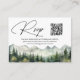 Une carte RSVP mariage élégante avec des montagnes aquarelles et des pins que vous pouvez customiser avec votre texte.