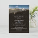 Elégante invitation de mariage avec une peinture de pins avec des montagnes enneigées dans l'arrière - plan. Cette invitation a également une carte RSVP et est également disponible en taille carré. Vous pouvez choisir parmi différents modèles pour le côté arrière de l'invitation, ajouter votre propre photo ou utiliser une couleur unie.