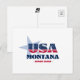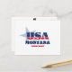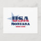 Carte postale Montana. Un design typographique créatif qui résume l'essence du Montana avec des couleurs audacieuses, rouge, blanc et bleu, et des éléments patriotiques, dont des étoiles et des rayures.