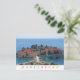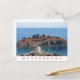 Une belle vue panoramique sur Sveti Stefan au Monténégro imprimée sur une carte postale.