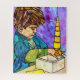 Parfait pour un enfant ou un enseignant de Montessori, ce puzzle présente l'oeuvre de l'artisan de Caroline du Sud et professeur certifié AMS, Amy Kuhl Cox. L'enfant décrit complète l'ensemble jaune de cylindres sans connaissance, un matériau populaire dans une classe primaire de Montessori. Amy travaille à partir de photographies pour dessiner les lignes noires avec des marqueurs Micron. Amy courbe chaque coin lorsque les lignes se croisent pour que les lignes deviennent la "tête" simulée du vitrail. Après avoir scanné le dessin, Amy utilise l'ordinateur pour "peindre" les textures de vitraux dans chaque section de son dessin.