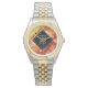 Célébrez le 23ème anniversaire de mariage impérial topaz et un amour qui résiste à l'épreuve du temps avec cette montre élégante ! Un élégant lettrage noir et blanc avec des confettis hexagonaux sur un arrière - plan mémoire rouge-jaune-orange profond ajoute une touche mémorable à cette occasion spéciale et à cette étape extraordinaire. Personnalisez avec les noms et les dates du mariage du couple. Design © W.H. Sim. Voir plus sur zazzle.com/expressionsoccasions
