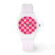 à damiers pêche rose chaud rétro géométrique avec des chiffres Regarder. Fashion Accessory Wrist Watch cadeau pour elle. Cool retro à damiers motif carré géométrique . Pêche en carreaux vintages et vérificateur moderne rose chaud.