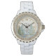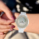 Montre hivernale en cristal pour femme – Émail blanc – Cadeau de vacances personnalisé.