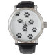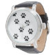 La montre mignonne motif patte au poignet comporte des empreintes de pattes noirs sur un arrière - plan blanc. Montrez votre personnalité avec cette montre au poignet amusante et tendance. Fait un grand cadeau pour toutes les occasions. Cliquez sur le bouton "Customiser!" pour changer la couleur de l'arrière - plan, ajouter du texte et plus encore!