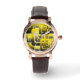 Montre vintage en or rose avec bracelet noir