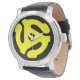 La montre à 45 tr/min, une montre cool très rétro pour le collectionneur de vinyle ou ventilateur rétro. Depuis les années 50, 60 et 70, ces adaptateurs ont été utilisés pour jouer des disques vinyle sur des tables tournantes. Le faire un grand cadeau pour quelqu'un spécial.