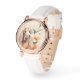 A beautiful watercolor portrait of an Afghan Hound dog sitting against lovely peach colored lilies flowers makes a great gift for anyone who loves the breed. Choose from watch style for him or for her.