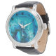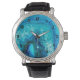 Pierres, cristaux et minéraux sont un style tendance intemporel. Cette impression présente et une image rapprochée d'une pierre de géode bleue vibrante, avec des petits cristaux dans la poche d'agate. Une couleur turquoise ou bleu aqua, avec des lignes et des bandes uniques. Un look ludique mais moderne et élégant. Super tendance bleu turquoise cristal Montre Geode