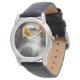 Style : Protecteur de la Couronne pour hommes Black Leather Strap Watch Conçu avec l'homme moderne en tête, le protecteur de la Couronne est construit avec une bracelet en cuir noir et un casquette de protection frappant. Personnalisez-la avec vos images et textes préférés pour créer une montre unique ! Montre au poignet pour homme Matériel : Face : Bracelet en alliage : Dimensions en cuir : Face : 1,41" de diamètre Bracelet : 9,25" x 0,78" Coque : 1,65" de diamètre Poids : 0,126 livres analogique Japon Quartz® Impression personnalisée sur le visage Disponible également avec fermeture à boucle en caoutchouc Résistance à l'eau : Jusqu'à 3 guichets automatiques (98,4 pi) Garantie limitée d'un an Fabricants Batterie incluse Ce produit est recommandé pour les 13 ans et plus