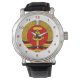 Portez une partie du sombre passé de l'Allemagne avec cette élégante montre à poignet de l'Allemagne de l'Est. Le bracelet a le vieux blason de la République Démocratique Allemande sur un arrière - plan blanc avec des chiffres rouges foncés. La montre peut être customisée : style, couleurs, taille, etc. Pour plus de détails comme celui-ci, visitez : www.zazzle.com/azorean*.
