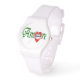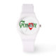 Une belle montre unisex blanche avec les mots italiens audacieux, "Amore Gesù" (Aimer Jésus en anglais) écrit au centre.