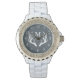 Cette montre élégante et élégante présente une silhouette de bois de cerf blanc encadrant votre lettre monogramme et votre nom complet en blanc avec des nombres blancs autour. La couleur arrière - plan est gris mais peut être customisée selon vos préférences personnelles.