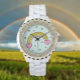 Ajoutez une touche de fantaisie à votre garde-robe grâce à notre montre Rhinestone White Enamel Watch. Ce garde-temps enchanteur présente un délicat motif arc-en-ciel sur le visage, avec des coeurs roses à chaque extrémité et des petites étoiles éparpillées autour, le tout dressé contre un arrière - plan bleu clair serein. Les strass pétillants sur la lunette apportent une touche de luxe, rendant cette montre à la fois ludique et élégante. Parfait pour toutes les occasions, cette montre allie sans effort charme et sophistication. La bande d'émail blanc assure un ajustement confortable, tandis que le design coloré apporte une ambiance joyeuse et stimulante à votre journée. Laissez cette charmante montre être un rappel de toujours chercher l'arc-en-ciel après la pluie.