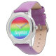 Couleurs Arc-En-Ciel Gradient Filles En Bande Regarder Personnalisé. Personnalisez la typographie cursive stylisée avec un nom, un monogramme ou un autre texte. Avec son joli et girly inspirationnel couleur arrière - plan, ce design rétro coloré arc-en-ciel fait une idée de cadeau pour une fille - pour un arc-en-ciel et licornes fête d'anniversaire, cadeau de fleur mariage, retour à l'école / premier jour de l'idée de tenue d'école, Noël, ou autre occasion spéciale.