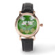 Belle, vintage, art déco, montre femme au design floral de nénuphars vert et blanc.