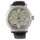 Graphique en étoile artistique de l'hémisphère nord et sud. Constellations et étoiles plus brillantes marquées. Des marques de hachage noir subtiles pour indiquer les heures et les minutes.