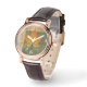 Montre en cuir brun carré parfaite pour femmes avec l’image d’une feuille d’érable verte, orange et jaune sur un vert et un brun courbé. Voir le charme carré assorti, grand carré de porte - clé métallique haut de gamme et carré porte - clé acrylique double face. Voir l'ensemble de la collection Thanksgiving Watch sous la catégorie ACCESSORIES dans la section VACANCES.