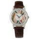 Profitez des couleurs chaudes de la saison automnale avec cette montre bracelet élégante. Le visage de la montre est décoré de feuilles d'automne en vert saisonnier, marron et jaune. Personnalisez avec un nom pour une touche individuelle supplémentaire.