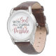 Surveillez-le, grand comme un cadeau pour un pasteur, "Avec Dieu tout est possible" sur la face de la montre, groupe en Cuir Brown. anniversaire, Fête des pères,